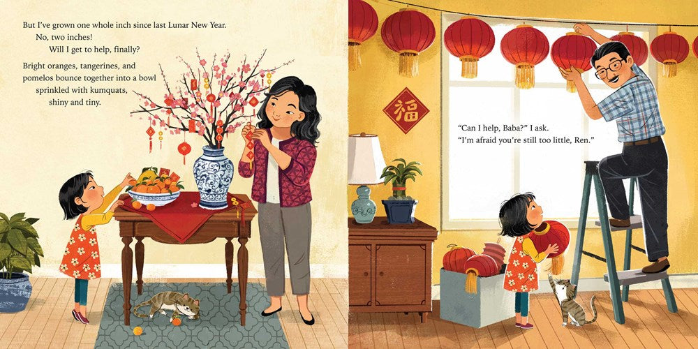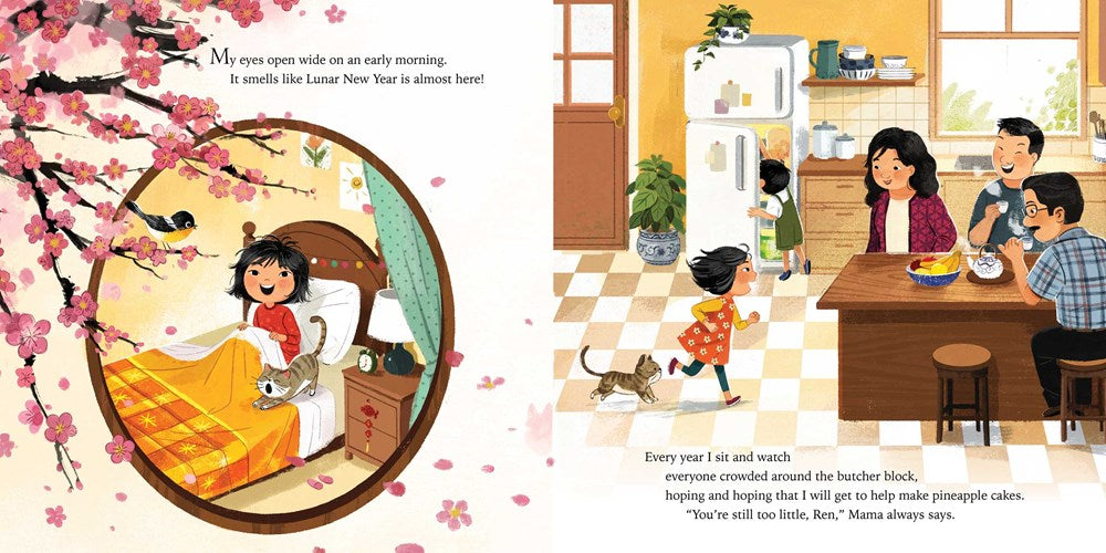 Little Ren looks forward to the preparation for and festivities of Lunar New Year, but she is always too little to help make the delicious pineapple cakes that are her favorite. She watches family members rolling out the dough and loves the mouth-watering smell. Watching and waiting, when will Ren be old enough?