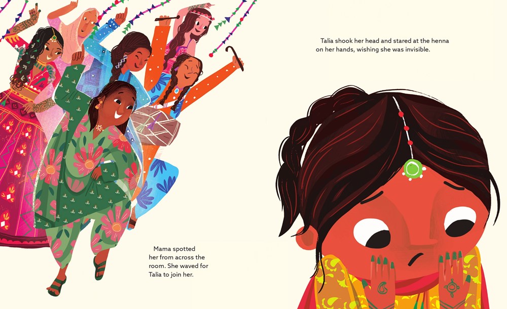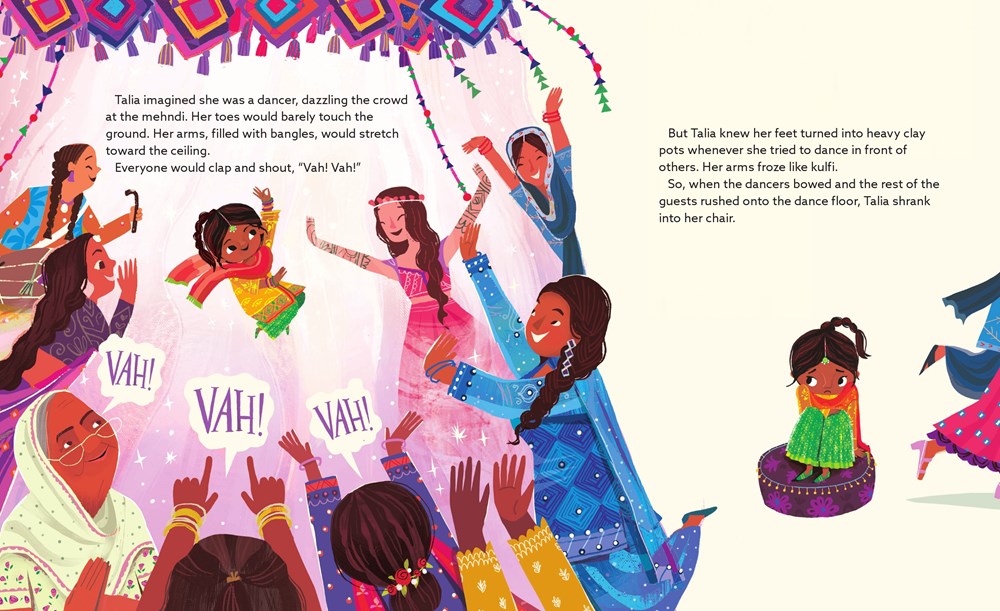 Talia wants to be as graceful as the bhangra dancers at the mehndi: Bend! Twirl! Snap! But Talia’s feet drag and her arms freeze when she tries to dance in front of others. Instead, she sits in her chair. Still, maybe with some help from her dadi (grandmother), Talia might find the courage to take to the floor. But then, can she convince Dadi to join her?