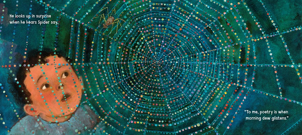 What is poetry? Is it glistening morning dew? Spider thinks so. Is it crisp leaves crunching? That’s what Squirrel says. Could it be a cool pond, sun-warmed sand, or moonlight on the grass? Maybe poetry is all of these things, as it is something special for everyone—you just have to take the time to really look and listen. The magical thing is that poetry is in everyone, and Daniel is on his way to discovering a poem of his own after spending time with his animal friends. What is poetry? If you look and listen, it’s all around you!
