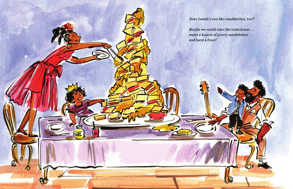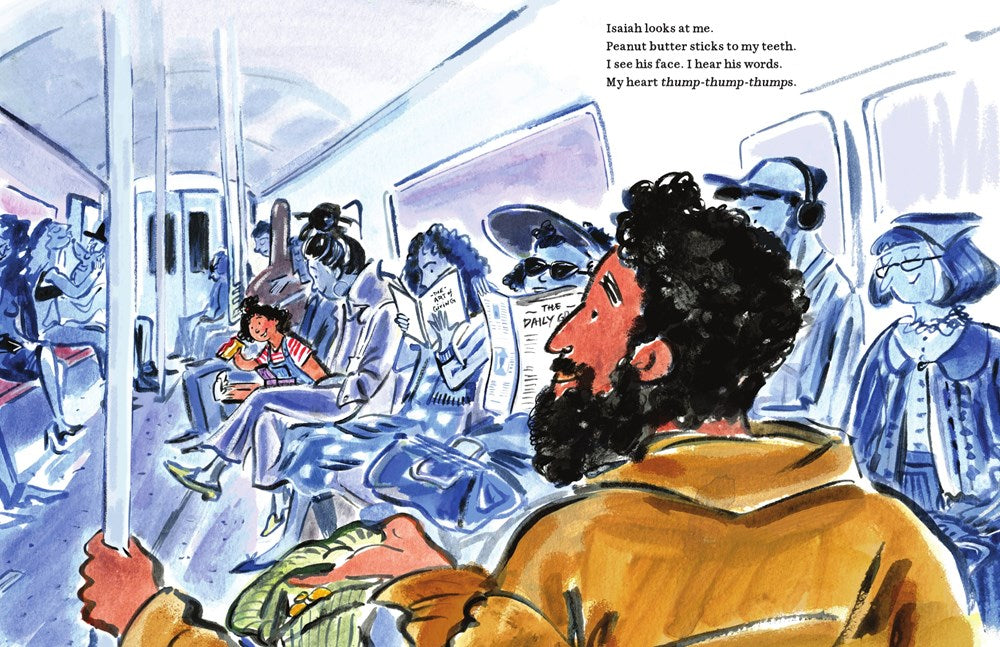Faith takes the train with her mother most days, and today she's eating one of Grandma's delicious sandwiches. Isaiah, who usually sings a song on their ride home, is not singing today. Instead, he asks a question that quiets a busy train into awkward silence.