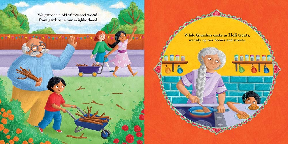Swirling clouds of color. Sweet gujiya dumplings. Singing and dancing in the street. During this special time of year, friends and family come together to celebrate the arrival of spring and the triumph of goodness and love over evil. Young readers will love following two siblings as they enjoy all the wonderful traditions and treats Holi has to offer—baking and bonfires, stories and sweets and, of course, a wild day of fun where people shower one another in brightly colored powders!