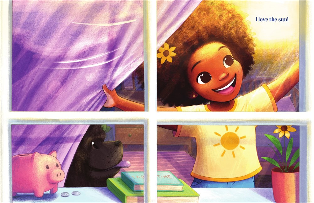 Every morning, young Tabitha wakes up and greets the sun. She loves how it brings everyone JOY. But one day she wakes up and the sun is missing! So Tab hops on her strawberry shortcake bike with her puppy in tow and makes it her business to find the sun.