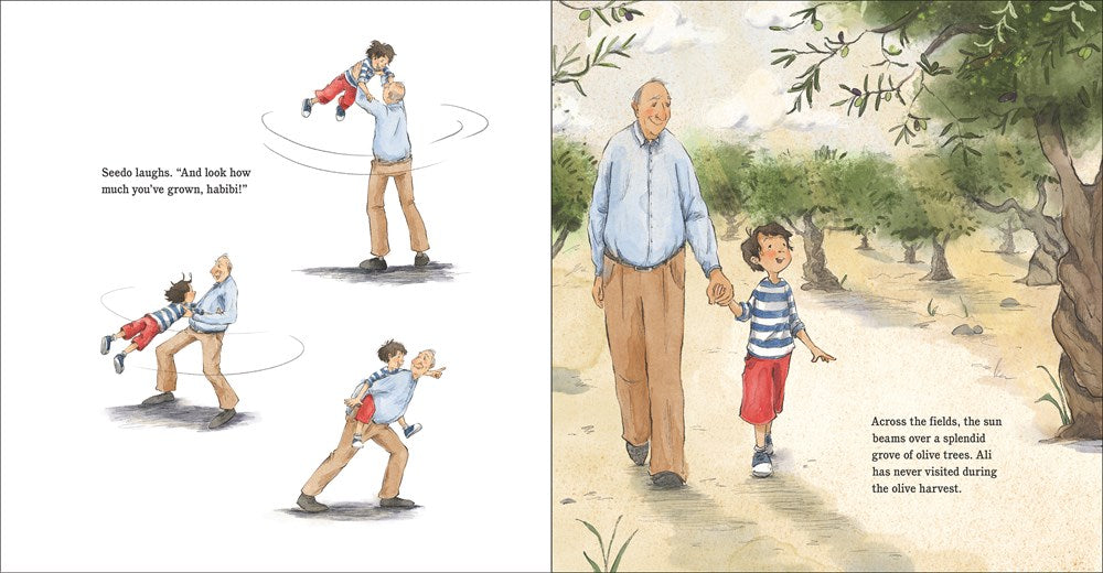 A gentle story about intergenerational bonds and the significance of olive trees to Palestinians as both sustenance and a metaphor representing closeness to the land.