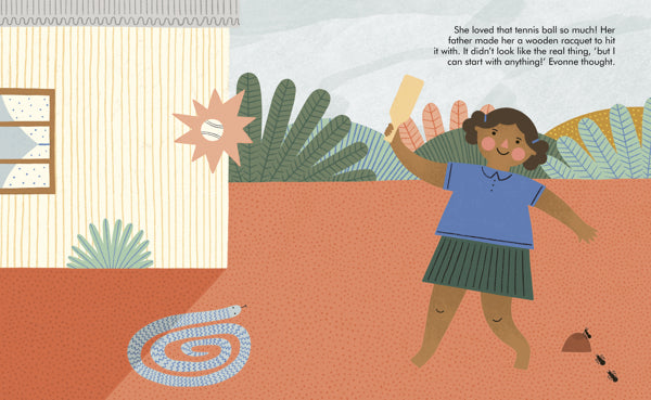 Evonne grew up on a hot, dusty farm in Australia. She was the third of eight children, and descendant of the Wirundjuri people, who have lived on the land for more than 60,000 years. Her talent for tennis was discovered at a local tennis club, and before she knew it, the girl dreaming about the place called 'Wimbledon' was playing on centre court. This moving book features stylish and quirky illustrations and extra facts at the back, including a biographical timeline with historical photos and a detailed profile of the brilliant tennis player's life.