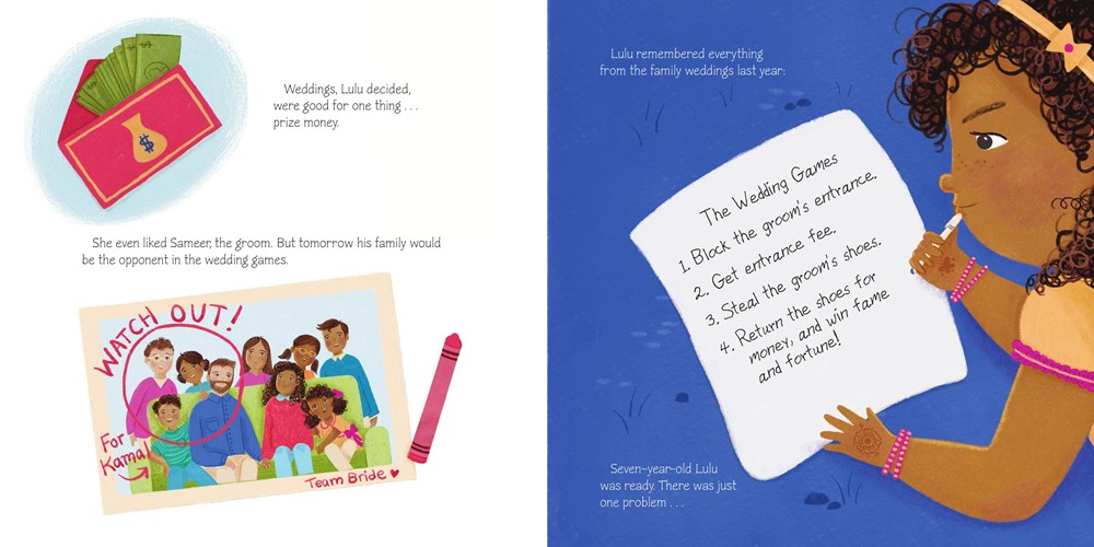 It’s wedding day, and Lulu is finally old enough to have a plan of her own for winning the prize during joota chupai! In Lulu’s family, kids on the bride’s side of the family play a game: Take the groom’s shoes and hold on to them until he gives them a prize.