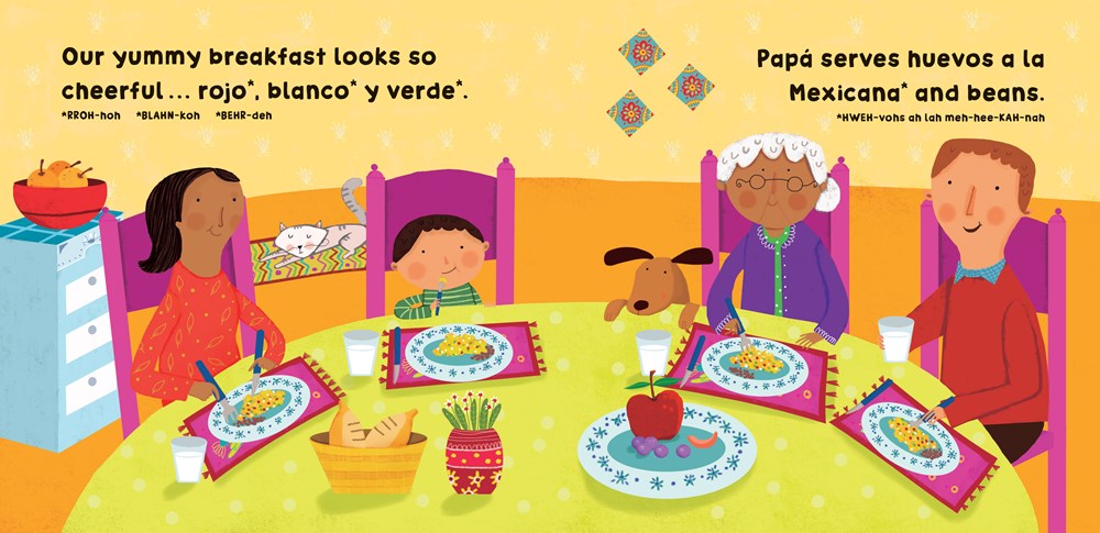 ¡Hola! Let's spend a day in Mexico. Enjoy huevos in the morning, take part in family activities, and settle down for dulces sueños at night. Even learn words in Spanish with pronunciation guides throughout the story.