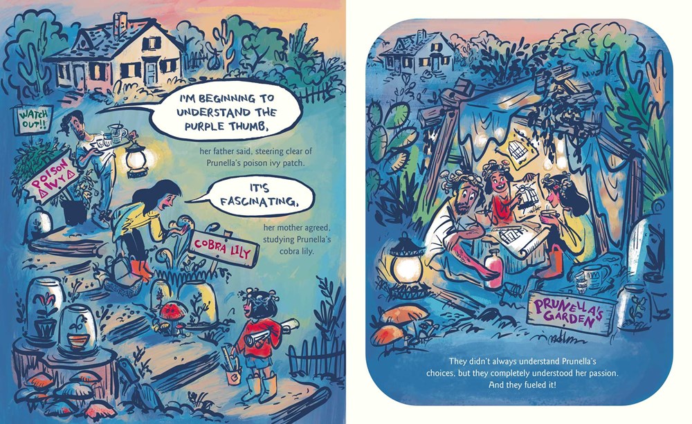 When Prunella is born with a purple thumb instead of a green one like her parents, everyone’s stumped. What could it mean? Before long, they find out. Prunella prefers corpse flowers to carnations, fungi to ferns, and poison ivy to petunias. The stickier and scarier the plant, the more Prunella loves it.