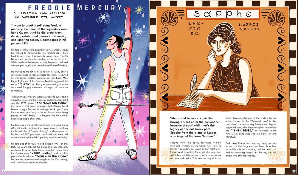 Queer Heroes is a vibrantly illustrated book of biographies celebrating the achievements of great LGBTQ artists, writers, innovators, athletes, and activists.