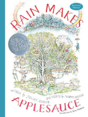 Featuring an introduction by Caldecott Medalist Jerry Pinkney, Rain Makes Applesauce is popular both as a bedtime story and as a go-to title for elementary teachers of creative writing.