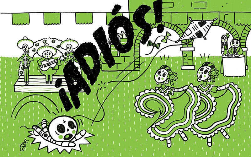 With a clever text comprised of only 2 words, Hola. ¡Adiós! features dynamic, neon green art that pops off the pages, a completely unique approach to storytelling, and a wildly appealing (but not scary!) cast of calavera characters from the fantastical world of Skeletown. Here's a rambunctious romp sure to delight bilingual and emerging Spanish language readers (but also simple enough to be completely understood by speakers of any language).