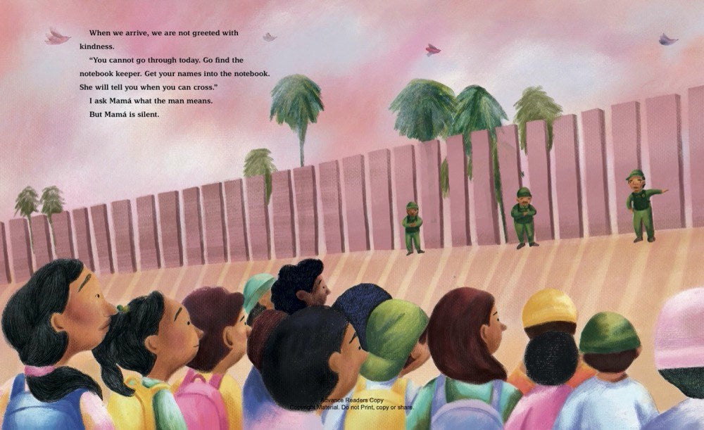 In this moving and stunningly-illustrated picture book, Noemi and Mama flee their home in Mexico, and head for the US border. There, they look for "The Notebook Keeper"-- the person in charge of a ledger for those waiting to cross, and they add their names to the book. As the days turn into weeks, and hope dwindles, the little girl looks for kindness around her-- and inside herself. One day, when the Notebook Keeper's own name is called to cross, Noemi and her Mama are chosen--for the generosity in their hearts-- to take her place as the next notebook keepers.