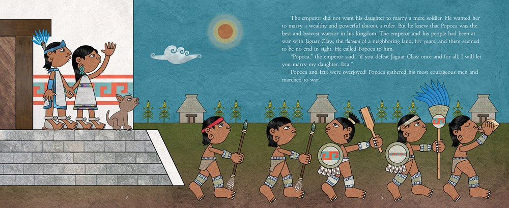 The emperor did not want his daughter to marry a mere warrior, but he recognized Popoca’s bravery. He offered Popoca a deal: If the warrior could defeat their enemy, Jaguar Claw, then the emperor would permit Popoca and Izta to wed. But Jaguar Claw had a plan to thwart the warrior. Would all be lost?