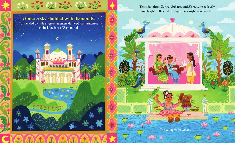 Once upon a time, in a bejeweled kingdom, there ruled a proud king with four daughters. But the youngest, Princess Amal, often stood out among her sisters for all the wrong reasons: she was clumsy, she was loud, and she loved to play pranks.