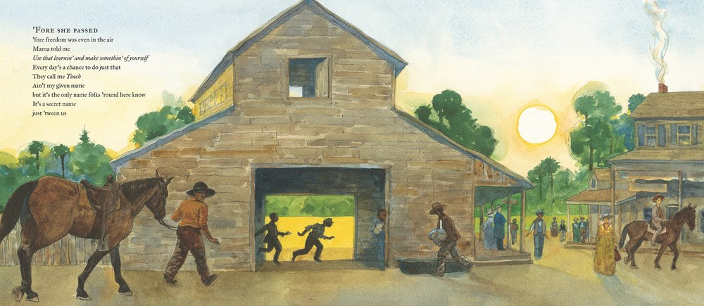 With a spare, moving first-person narration told in an era-appropriate dialect, complemented by stunning watercolor illustrations, the celebrated duo of Lesa Cline-Ransome and James E. Ransome honor the bravery and generosity of spirit behind countless untold acts of resistance during the time of slavery. An author’s note highlights the vital role of literacy and education toward the securing of freedom, both historically and to the present day.