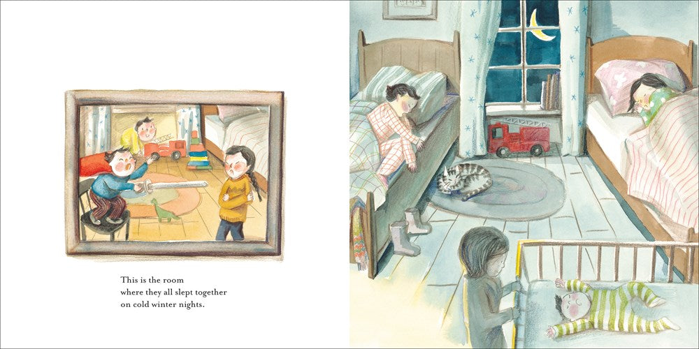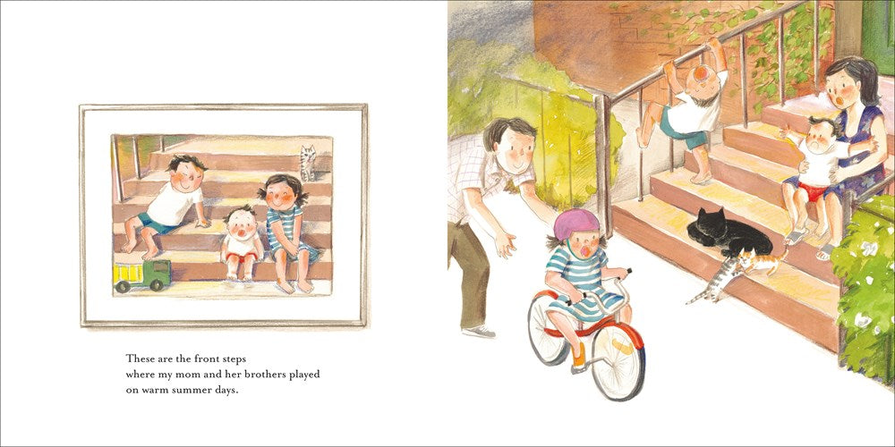 A tree has bloomed on a city block outside a house for many years. Inside that house, several generations of a family have grown up. Grandma and Grandpa arrived at the house from a country far away, and Mom and her brothers played on the steps on warm summer days. This little girl learned how to walk on that street, too. Here is a warm story with spare text that follows a family through seasons and generations, from the early days of immigration to the times that made their house into a home.