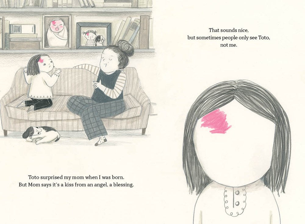 This little girl doesn’t mind her birthmark, most of the time. She calls it Toto, and her mom calls it a kiss from an angel. But sometimes, it feels like people look so hard at Toto they forget to see her. So when it’s time to start school, her mom cuts her bangs to cover Toto up, at least for a little while.