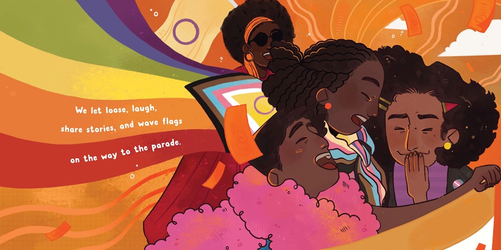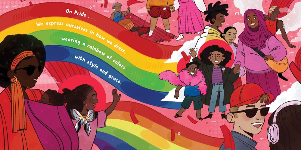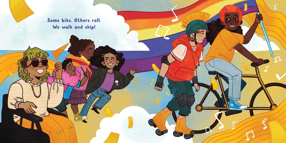 Join the dancing parade across pages of fabulous floats, rainbow garb, all-inclusive flags, and diverse people of all ages. Even an unexpected rainstorm can’t dampen the resilient spirits of the joyous neighborhood, because the sun will always break through the clouds and shine down on everyone under one rainbow.