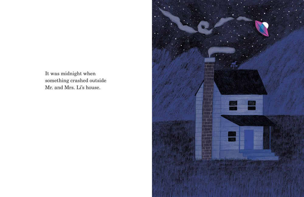 "A fabulously illustrated, rib-tickling, and affecting picture book in which Mr. Li and his neighbors demonstrate the potential of kindness and cooperative spirit. . . . Outrageously giggle-inducing dialogue from the aliens is characterized by non sequiturs and garbled syntax, and Fang revels in the disconnect between human expectations and alien quirks. Mixed media illustrations in strong purples, yellows, blues, and greens are a delight. This book's wonderful message of offering help where help is needed is wisely and gracefully delivered." —STARRED REVIEW, Shelf Awareness