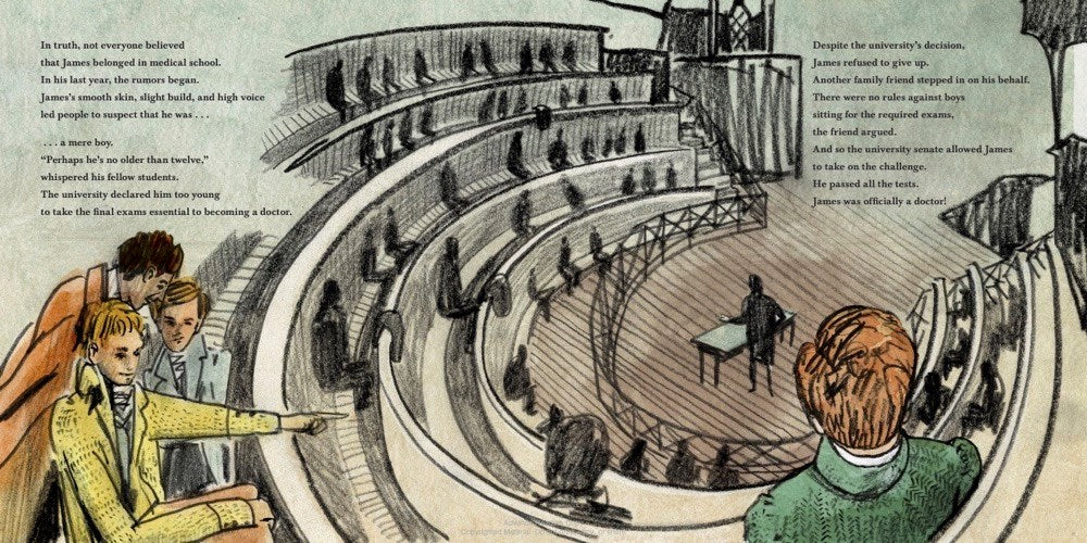 This unique picture book biography tells the story of Dr. James Barry, born female, who lived as a man from age 18 to his death.