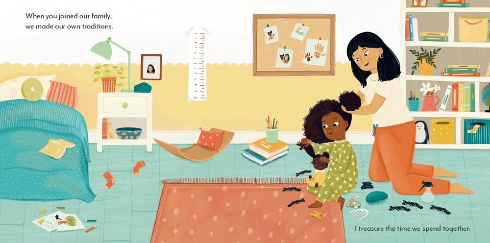When you joined our family, I knew you were just who I’d waited and wished for. From first meetings to settling in together and creating new traditions, this book gently explores the adoption experience and shows that it is love that binds a family together most of all.