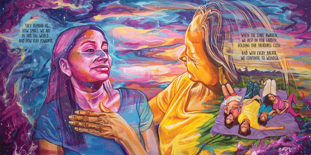 When Grandma walks to her special garden, her granddaughters know to follow her there. Grandma invites the girls to explore her collection of treasures--magical rocks, crystals, seashells, and meteorites--to see what wonders they reveal. "They are alive with wisdom," Grandma says. As her granddaughters look closely, the treasures spark the girls' imaginations. They find stories in the strength of rocks shaped by volcanoes, the cleansing power of beautiful crystals, the mystery of the sea that houses shells and shapes the environment, and the long journey meteorites took to find their way to Earth. This is the power of Grandma's special garden, where wonder grows and stories blossom.